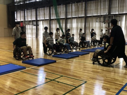 7月8日に淑徳大学千葉キャンパスにて車いすスキル講座を開催しました。社会福祉学部、教育福祉学部の学生を中心に約40名の学生に参加していただきました。