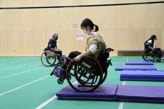 こう記すとすいすい習得しているように聞こえますが、はじめは皆車いすを後ろに傾ける恐怖を克服することから始め、インストラクターの方に手取り足取り教わりながら徐々にできるようになっていきました。