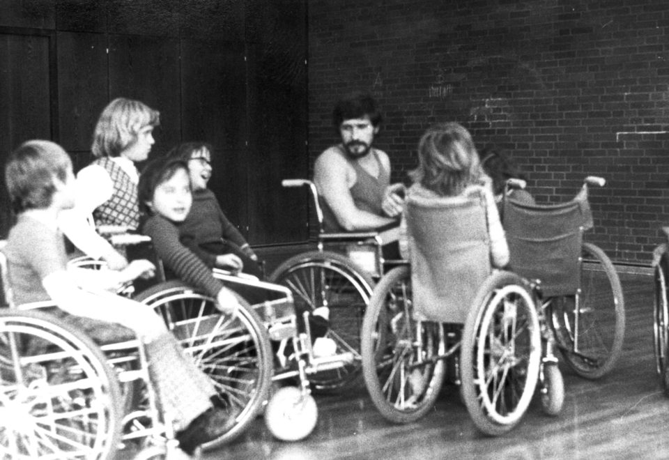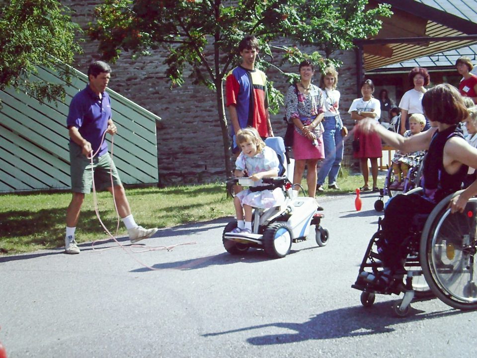 <車いすで縄跳び・障害があることで損失している当たり前の遊びの機会を補填するという意味があります(1991年)>