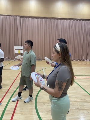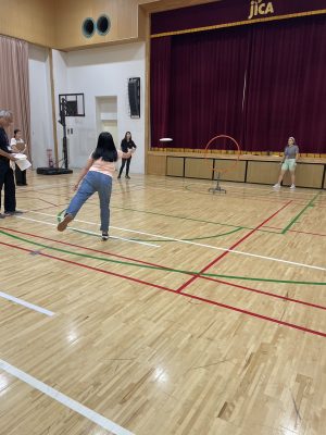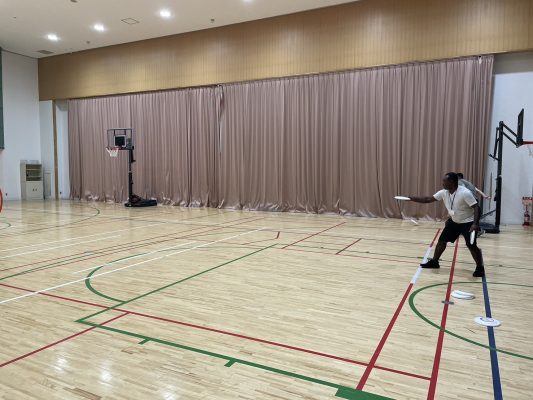 続いてAccuracyという、輪の中にディスクを入れる種目を行いました。Distanceでまっすぐ投げることができていた方はAccuracyも難なくこなしていましたが、やはり上や横にずれるのが難しそうでした。