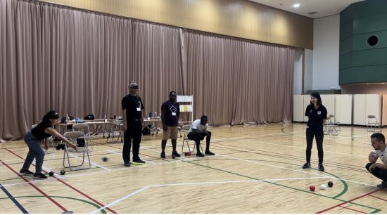 シンプルなルールですが、ボールをどこに投げるかよく考える必要があります。参加者たちが話し合いながら、よく考えて投げている様子が伝わってきました。私たちインターン生も実際にやってみましたが、狙ったところに投げるのが思ったよりも難しかったです。